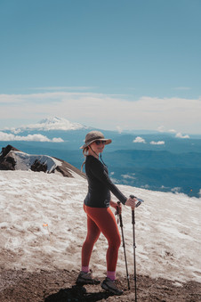 After lots of momentum, we finally reached the summit! We could see Mt Rainier, Mt Adams, and Mt hood in our 360, panoramic view. We grabbed our summit sandwiches and snacks (Rainier cherries of course, from the farmers market!) and enjoyed the view. We got lucky and the wind conditions were minimal, but some people experience strong winds at the summit, so be mindful thatit could happen for you. We did pull out our windbreaker to help reduce even the mild wind.